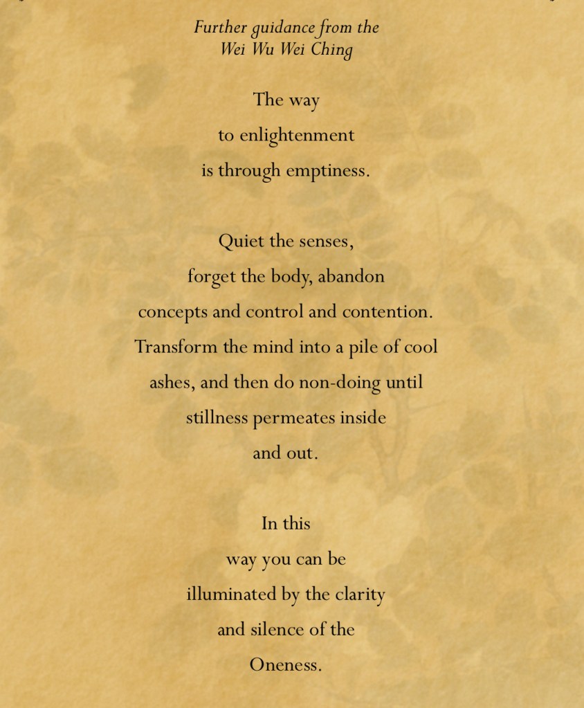 i’ve written about letting go, surrendering, and just letting peace come to me. And in doing that, recognizing that peace is a gift, not something that I can just muster up through sheer will. I’m now seeing that in letting go and sitting back and resting in that stillness, what I encounter then is emptiness, but in an experientially different way. I now experience emptiness as space, space for the divine, the universe, the flow of life to be present and felt. And in that state, I am able to experience life fully in that moment.